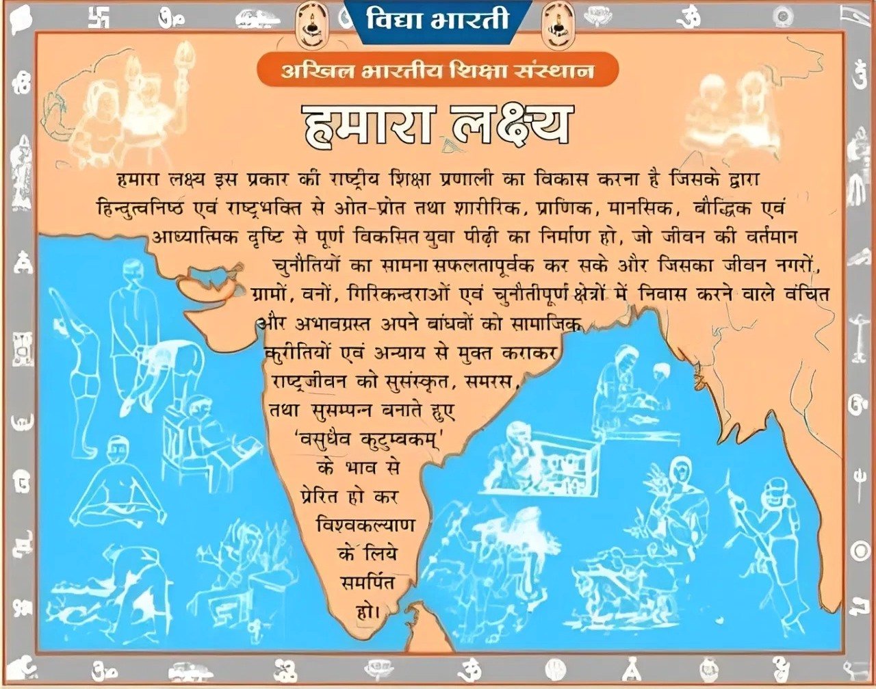 शिक्षा का ऐसा स्वरूप विकसित करना जिसके माध्यम से भारत की अमूल्य आध्यात्मिक निधि, परम सत्य के अनुसंधान में पूर्व पुरुषों के अनुभव एवं गौरवशाली परंपराओ की राष्ट्रीय थाती को वर्तमान पीढ़ी को सौंपा जा सके और उसकी समृद्धि में वह अपना योगदान करने में समर्थ हो सके।